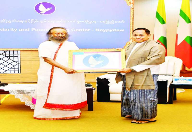 နိုင်ငံတော်စီမံအုပ်ချုပ်ရေးကောင်စီအဖွဲ့ဝင်၊ အမျိုးသားစည်းလုံးညီညွတ်ရေးနှင့် ငြိမ်းချမ်းရေးဖော်ဆောင်မှု ညှိနှိုင်းရေးကော်မတီဥက္ကဋ္ဌ ပြည်ထောင်စုဝန်ကြီး ဒုတိယဗိုလ်ချုပ်ကြီး ရာပြည့်သည် အိန္ဒိယနိုင်ငံမှ လူသားချင်းစာနာထောက်ထားမှုခေါင်းဆောင်နှင့် ငြိမ်းချမ်းရေးသံတမန်ကြီး Gurudev Sri Sri Ravi Shankar ဦးဆောင်သည့် ကိုယ်စားလှယ်အဖွဲ့အား ယနေ့မွန်းလွဲပိုင်းတွင် နေပြည်တော်ရှိ အမျိုးသားစည်းလုံးညီညွတ်ရေးနှင့် ငြိမ်းချမ်းရေးဖော်ဆောင်မှုဗဟိုဌာန၌ လက်ခံတွေ့ဆုံသည်။