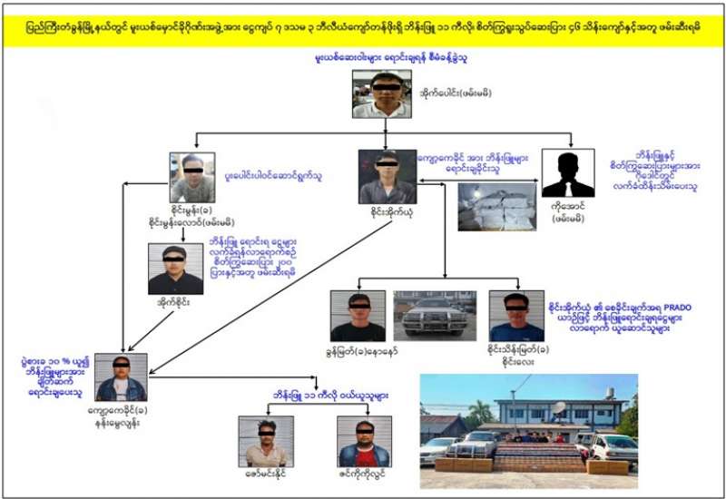 မူးယစ်ဆေးဝါးတားဆီးနှိမ်နင်းရေးရဲတပ်ဖွဲ့မှ တပ်ဖွဲ့ဝင်များပါဝင်သော ပူးပေါင်းအဖွဲ့သည် ဖေဖော်ဝါရီလ ၁ ရက်နေ့ ညနေ ၅ နာရီခွဲအချိန် မန္တလေးတိုင်းဒေသကြီး၊ ပြည်ကြီးတံခွန်မြို့နယ်၊ ၅၃ လမ်း၊ ၁၄၂ × ၁၄၃ လမ်းကြားတွင် မူးယစ်ဆေးဝါးအရောင်းအဝယ်ပြုလုပ်မည်ဖြစ်ကြောင်း သတင်းအရ စောင့်ဆိုင်းနေစဉ် ရောက်ရှိလာသူ ဇော်မင်းနိုင်နှင့် ဇင်ကိုကိုလွင် တို့ ၂ ဦးအား LIGHT TRUCK ယာဉ် တစ်စီး၊ မော်တော်ဆိုင်ကယ်တစ်စီး၊ ဘိန်းဖြူ ၁၁ ကီလိုတို့နှင့်အတူ ဖမ်းဆီးရမိခဲ့ကြောင်း