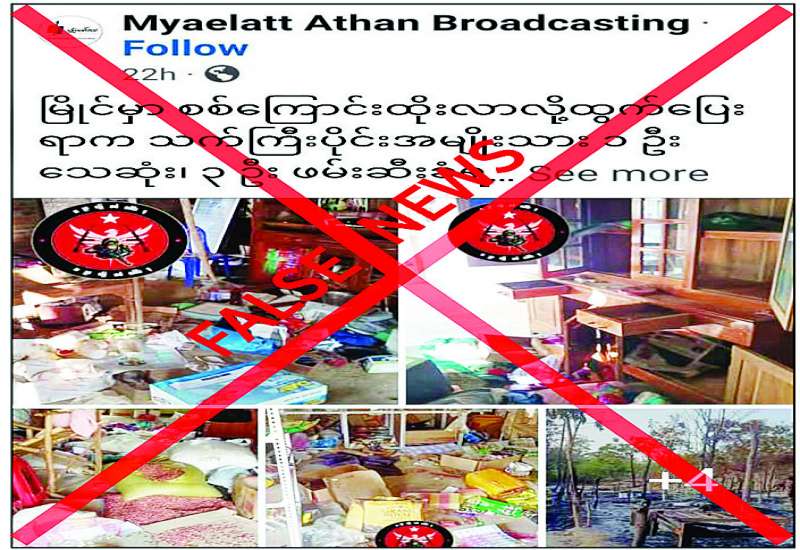 မကွေးတိုင်းဒေသကြီး မြိုင်မြို့နယ်တွင် လုံခြုံရေးတပ်ဖွဲ့ဝင်များကြောင့် ယာယီစစ်ဘေးရှောင်ထွက်ပြေးလာသည့် ဒေသခံသက်ကြီးပိုင်း အမျိုးသားတစ်ဦး သေဆုံးခဲ့ပြီး အမျိုးသား သုံးဦးကိုလည်း လုံခြုံရေးတပ်ဖွဲ့ဝင်များက ဖမ်းဆီးသွားကြောင်း တရားမဝင် ပြည်ဖျက်မီဒီယာများက မဟုတ်မမှန် ရေးသားဖြန့်ဝေလျက်ရှိသည်ကို တွေ့ရှိရသည်။