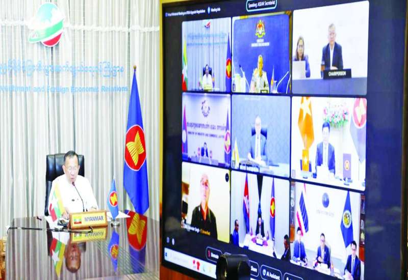 မြန်မာနိုင်ငံ၏ အာဆီယံလွတ်လပ်သော ကုန်သွယ်မှုဒေသကောင်စီဝန်ကြီး၊ ရင်းနှီးမြှုပ်နှံမှုနှင့် နိုင်ငံခြားစီးပွားဆက်သွယ်ရေးဝန်ကြီးဌာန ပြည်ထောင်စုဝန်ကြီး ဒေါက်တာကံဇော်သည် ယနေ့မွန်းလွဲပိုင်းတွင် အာဆီယံကုန်စည်ကုန်သွယ်ရေးသဘောတူစာချုပ် အဆင့်မြှင့်တင်ခြင်းဆိုင်ရာ စေ့စပ်ညှိနှိုင်းမှုများနှင့်စပ်လျဉ်းသည့် အာဆီယံလွတ်လပ်သောကုန်သွယ်မှုဒေသကောင်စီဝန်ကြီးများ အစည်းအဝေးသို့ ဗီဒီယိုကွန်ဖရင့်စနစ်ဖြင့် ပါဝင်တက်ရောက်သည်။