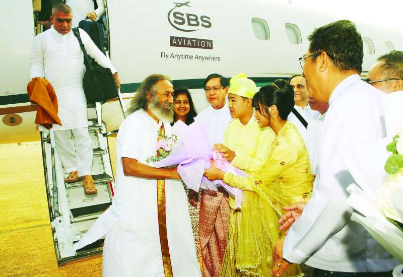 အိန္ဒိယနိုင်ငံမှ လူသားချင်းစာနာထောက်ထားမှုခေါင်းဆောင်နှင့် ငြိမ်းချမ်းရေးသံတမန်ကြီး ဂုရုကြီး Sri Sri Ravi Shankar ဦးဆောင်သော ကိုယ်စားလှယ်အဖွဲ့သည် ယနေ့ညနေပိုင်းတွင် လေကြောင်းခရီးဖြင့် ရန်ကုန်မြို့သို့ ရောက်ရှိကြသည်။