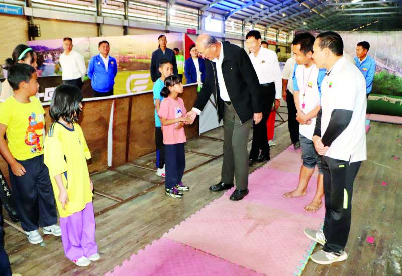 အားကစားနှင့် လူငယ်ရေးရာဝန်ကြီးဌာန ပြည်ထောင်စုဝန်ကြီး Jeng Phang နော်တောင်သည် ရှမ်းပြည်နယ်လူမှုရေးရာဝန်ကြီး ဦးမင်းမင်းလွင်၊ တာဝန်ရှိသူများနှင့်အတူ ယမန်နေ့က တောင်ကြီးမြို့ ပြည်နယ်အားကစားကွင်း၌ ကမ္ဘောဇဖလားအလွတ်တန်းဖိတ်ခေါ်ဘောလုံးပြိုင်ပွဲ ယှဉ်ပြိုင်နေမှုကို ကြည့်ရှုအားပေးပြီး ပြိုင်ပွဲဝင်အသင်းများမှ အုပ်ချုပ်နည်းပြများ၊ ပြိုင်ပွဲဝင်အားကစားသမားများအား ရင်းရင်းနှီးနှီးတွေ့ဆုံနှုတ်ဆက်ခဲ့သည်။