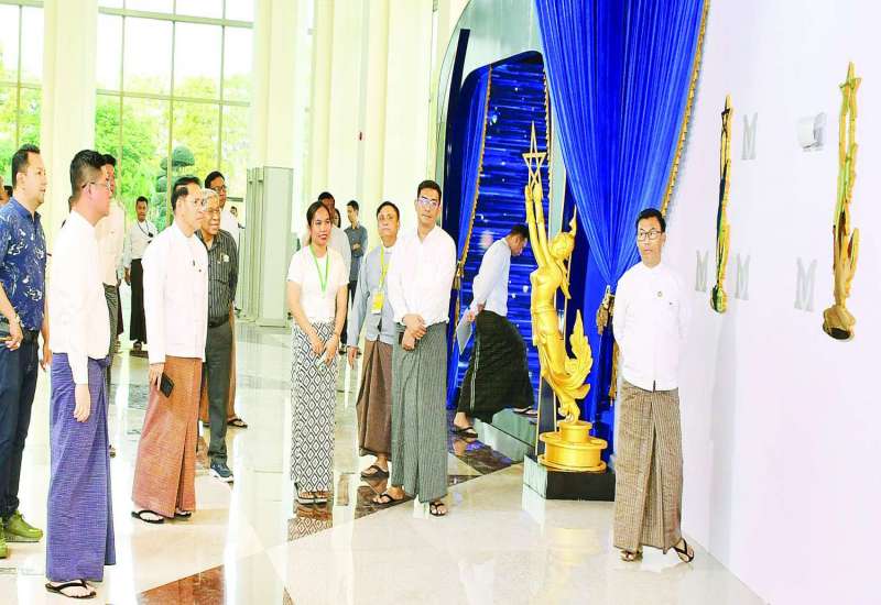 ၂၀၂၄ ခုနှစ်အတွက် မြန်မာ့ရုပ်ရှင် ထူးချွန်ဆုချီးမြှင့်ပွဲအခမ်းအနားကို ဖေဖော်ဝါရီ ၉ ရက်တွင် နေပြည်တော်ရှိ မြန်မာအပြည်ပြည်ဆိုင်ရာကွန်ဗင်းရှင်းဗဟိုဌာန - ၁ ၌ ခမ်းနားထည်ဝါစွာ ကျင်းပသွားမည်ဖြစ်ရာ မြန်မာ့ရုပ်ရှင်ထူးချွန် ဆုချီးမြှင့်ပွဲအခမ်းအနား ကျင်းပရေးဦးစီးကော်မတီဥက္ကဋ္ဌ ပြန်ကြားရေးဝန်ကြီးဌာန ပြည်ထောင်စုဝန်ကြီး ဦးမောင်မောင်အုန်းသည် တာဝန်ရှိသူများနှင့်အတူ ယနေ့ညနေပိုင်းတွင် အခမ်းအနား အောင်မြင်စွာကျင်းပနိုင်ရေး ကြိုတင်ပြင်ဆင် ဆောင်ရွက် နေမှုများကို ကြည့်ရှုစစ်ဆေးသည်။