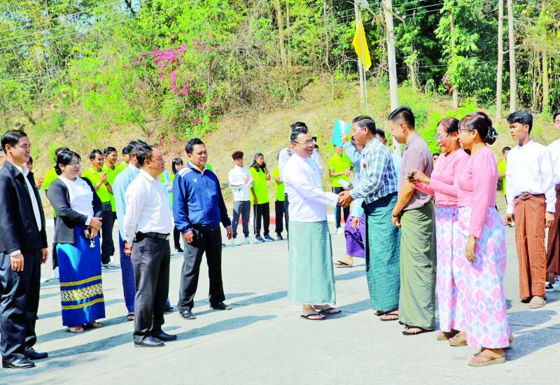(၇၈)နှစ်မြောက် ပြည်ထောင်စုနေ့အခမ်းအနား ယဉ်ကျေးမှုအဖွဲ့များ ကြိုဆိုနေရာချထားရေးနှင့် ဧည့်ခံကျွေးမွေးရေး ဆပ်ကော်မတီဥက္ကဋ္ဌ အားကစားနှင့်လူငယ်ရေးရာဝန်ကြီးဌာန ဒုတိယဝန်ကြီး ဦးထိန်လင်းသည် တာဝန်ရှိသူများနှင့်အတူ (၇၈) နှစ်မြောက် ပြည်ထောင်စုနေ့ အခမ်းအနားတက်ရောက်ရန်အတွက် ယနေ့နံနက်ပိုင်းတွင် ရောက်ရှိလာကြသည့် ချင်းပြည်နယ်၊ စစ်ကိုင်းတိုင်းဒေသကြီး၊ ရခိုင်ပြည်နယ်နှင့် ရှမ်းပြည်နယ်တို့မှ တိုင်းရင်းသားရိုးရာယဉ်ကျေးမှုအကအဖွဲ့များအား ရင်းရင်းနှီးနှီးကြိုဆို နှုတ်ဆက်သည်။