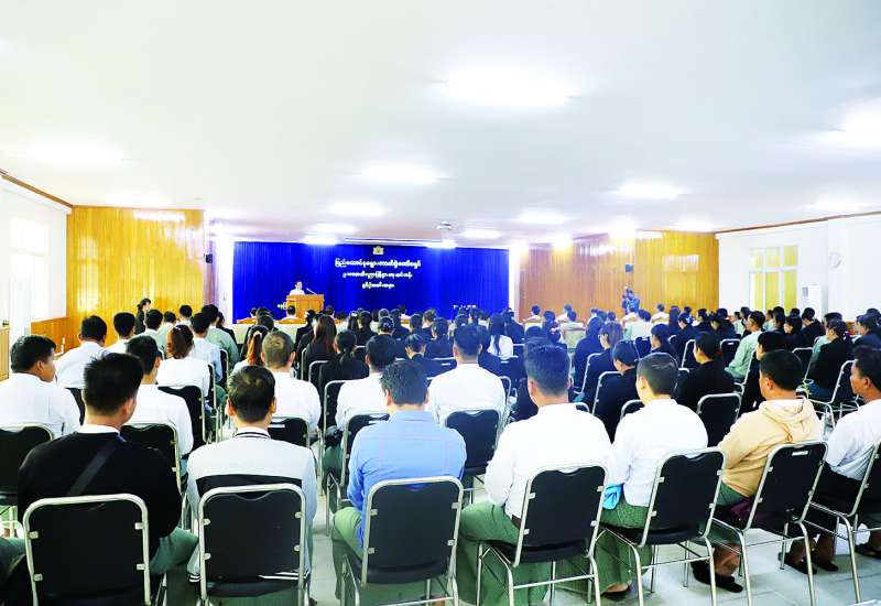 ပြည်ထောင်စုရွေးကောက်ပွဲကော်မရှင် ဥပဒေအသိပညာ ပြန့်ပွားရေးသင်တန်းဖွင့်ပွဲကို ယနေ့ နံနက်ပိုင်းတွင် နေပြည်တော်ရှိ ပြည်ထောင်စုရွေးကောက် ပွဲကော်မရှင်ရုံး၌ကျင်းပရာ ပြည်ထောင်စုရွေးကောက်ပွဲကော်မရှင်ဥက္ကဋ္ဌ ဦးကိုကိုနှင့်အဖွဲ့ဝင်များ၊ အရာထမ်း၊ အမှုထမ်းများ တက်ရောက်ကြသည်။