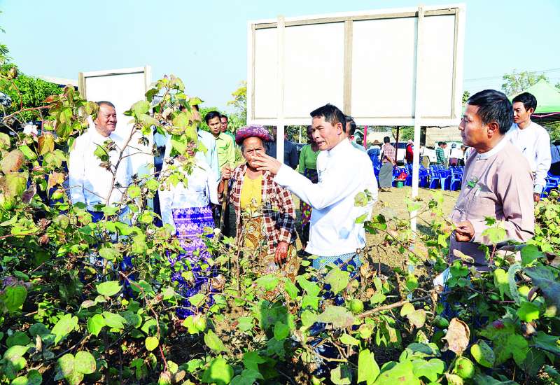 စိုက်ပျိုးရေး၊ မွေးမြူရေးနှင့်ဆည်မြောင်းဝန်ကြီးဌာန ပြည်ထောင်စုဝန်ကြီး ဦးမင်းနောင်သည် တာဝန်ရှိသူများ၊ ဝါစိုက်တောင်သူများနှင့်အတူ ယနေ့မွန်းလွဲပိုင်းတွင် တပ်ကုန်းမြို့နယ် မြောင်မြိုက်ကျေးရွာအုပ်စု ဒဟတ်ကုန်းကျေးရွာရှိ ချည်မျှင်ရှည်ဝါစိုက်ကွင်းသို့ ကွင်းဆင်းကြည့်ရှုသည်။