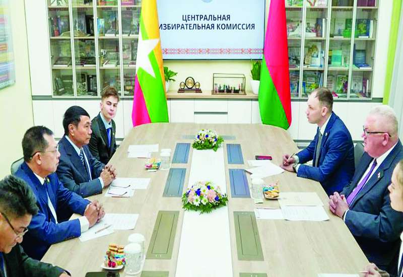 ၂၀၂၅ ခုနှစ် ဇန်နဝါရီ ၂၆ ရက်က ပြုလုပ်ခဲ့သည့် ဘယ်လာရုစ်သမ္မတရွေးကောက်ပွဲသို့ နိုင်ငံတကာစောင့်ကြည့်လေ့လာရေးအဖွဲ့အဖြစ် သွားရောက်လေ့လာခဲ့ကြသည့် ပြည်ထောင်စုရွေးကောက်ပွဲကော်မရှင်အဖွဲ့ဝင် ဦးအောင်စောဝင်းနှင့် ဦးမြင့်သိန်းတို့သည် ဇန်နဝါရီ ၂၁ ရက်မှ ၂၅ ရက်အထိ ပြုလုပ်သည့် ကြိုတင်မဲပေးခြင်းလုပ်ငန်းစဉ်များ ဆောင်ရွက်နေမှုကို လေ့လာခဲ့ပြီး ဇန်နဝါရီ ၂၄ ရက်တွင် ဘယ်လာရုစ်သမ္မတနိုင်ငံ ဗဟိုရွေးကောက်ပွဲကော်မရှင်ဥက္ကဋ္ဌ Mr. Igor Karpenko နှင့် တွေ့ဆုံဆွေးနွေးခဲ့သည်။