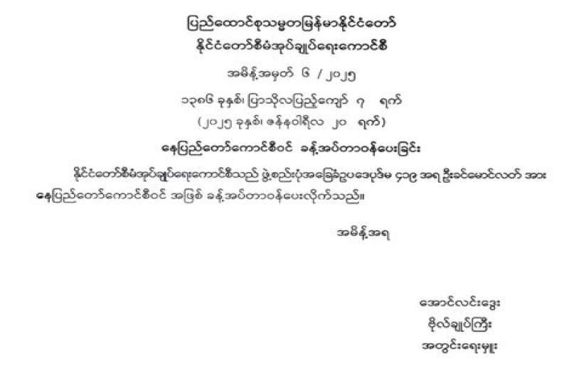 နေပြည်တော်ကောင်စီဝင် ခန့်အပ်တာဝန်ပေးခြင်း