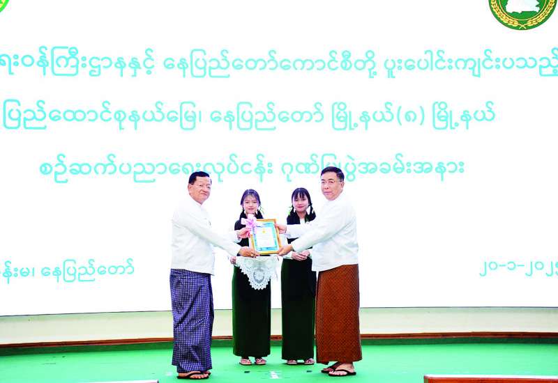 ပညာရေးဝန်ကြီးဌာနနှင့် နေပြည်တော်ကောင်စီတို့ ပူးပေါင်းကျင်းပသည့် ပြည်ထောင်စုနယ်မြေ နေပြည်တော် ရှစ်မြို့နယ် စဉ်ဆက်ပညာရေးလုပ်ငန်း ဂုဏ်ပြုပွဲအခမ်းအနားကို ယနေ့နံနက်ပိုင်းက နေပြည်တော်ကောင်စီ ဇမ္ဗူသီရိခန်းမ၌ ကျင်းပသည်။
