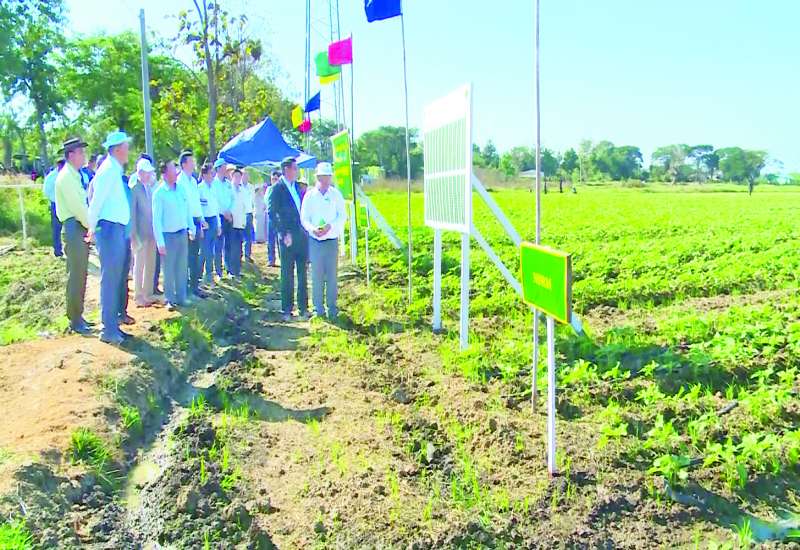 စိုက်ပျိုးရေး၊ မွေးမြူရေးနှင့် ဆည်မြောင်းဝန်ကြီးဌာန ဒုတိယဝန်ကြီး ဦးဗိုလ်ဗိုလ်ကျော်သည် တာဝန်ရှိသူများနှင့်အတူ ဇန်နဝါရီ ၁၇ ရက် နံနက်ပိုင်းက ပြည်မြို့နယ် ဝန်တင်ဆိပ်ကျေးရွာအနီးရှိ ချည်မျှင်ရှည်ဝါ အထူးဇုန်စိုက်ခင်းတွင် ရေစီးအားသုံးရေတင်ဒလက်ဖြင့် ရေပေးဝေနေမှုကိုလည်းကောင်း၊ ကံစုကျေးရွာအနီးရှိ ချည်မျှင်ရှည်ဝါအထူးဇုန် ဧက ၇၀၀ အောင်မြင်ဖြစ်ထွန်းနေမှုကိုလည်းကောင်း၊ မြောက်နဝင်း ဆည်ရေသောက်စနစ်အတွင်း နတ်တလင်းကျေးရွာအနီး နွေစပါး တိုးချဲ့စိုက်ပျိုးမည့်နေရာနှင့် ပြည်မြို့နယ်ငါးရွာအုပ်စုရှိ ၂၀၂၄ -၂၀၂၅ ခုနှစ် ဆောင်းနေကြာ ရုရှားမျိုးကိုးမျိုးပါဝင်သည့် မျိုးပေါင်း ၁၂ မျိုး ယှဉ်ပြိုင်စမ်းသပ်ကွက် တို့ကိုလည်းကောင်း လှည့်လည်ကြည့်ရှုအားပေးသည်။