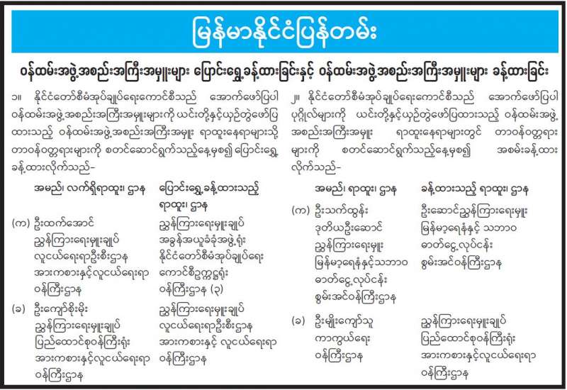 ဝန်ထမ်းအဖွဲ့အစည်းအကြီးအမှူးများ ပြောင်းရွှေ့ခန့်ထားခြင်းနှင့် ဝန်ထမ်းအဖွဲ့အစည်းအကြီးအမှူးများ ခန့်ထားခြင်း