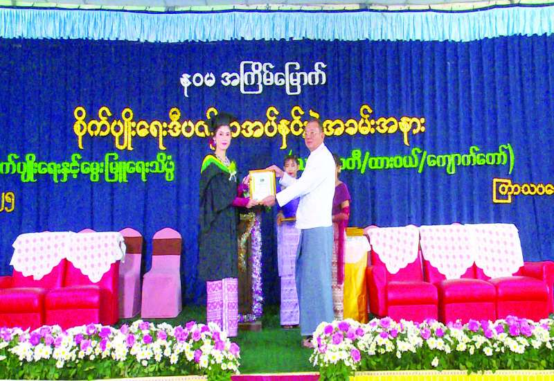 ရေဘေးသင့် အာမခံအလုပ်သမားများအား လူမှုဖူလုံရေးကူညီမှု အကျိုးခံစားခွင့် ၄၀ ရာခိုင်နှုန်း ခွင့်ပြုထုတ်ပေးခြင်းနှင့် အလုပ်ခွင်ထိခိုက်မှုကြောင့် အမြဲတမ်းမသန်စွမ်းမှုအကျိုးခံစားခွင့်ပေးအပ်ပွဲ အခမ်းအနားကို ယနေ့နံနက်ပိုင်းတွင် ရှမ်းပြည်နယ် တောင်ကြီးမြို့ လူထုအခြေပြုစုပေါင်းခန်းမ၌ ကျင်းပရာ အလုပ်သမားဝန်ကြီးဌာန ဒုတိယဝန်ကြီး ဦးဝင်းရှိန်နှင့် ရှမ်းပြည်နယ်ဝန်ကြီးများ၊ အလုပ်သမားဝန်ကြီးဌာနမှ တာဝန်ရှိသူများနှင့် စက်ရုံ၊ အလုပ်ရုံ၊ အလုပ်ဌာနများမှ အလုပ်ရှင်ကိုယ်စားလှယ်များ၊ အလုပ်သမား ကိုယ်စားလှယ်များ တက်ရောက်ကြသည်။