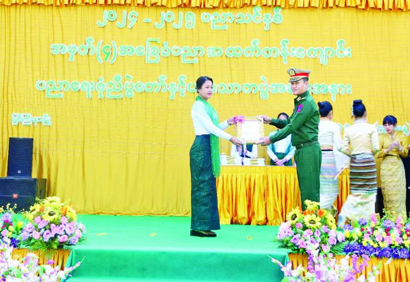 ကချင်ပြည်နယ် မြစ်ကြီးနားမြို့ အမှတ် (၄) အခြေခံပညာအထက်တန်းကျောင်း၏ ၂၀၂၄-၂၀၂၅ ပညာသင်နှစ် ပညာရေးစုံညီပွဲတော်ကို ယနေ့နံနက်ပိုင်းတွင် အဆိုပါကျောင်း၌ကျင်းပရာ မြောက်ပိုင်းတိုင်းစစ်ဌာနချုပ်တိုင်းမှူး ဗိုလ်မှူးချုပ်အောင်ဇော်ထွေးနှင့် တာဝန်ရှိသူများ၊ ဆရာဆရာမများ၊ ကျောင်းအကျိုးတော်ဆောင်များ၊ ကျောင်းသားကျောင်းသူများ၊ ကျောင်းသားမိဘများနှင့် ဖိတ်ကြားထားသူများ တက်ရောက်ကြသည်။