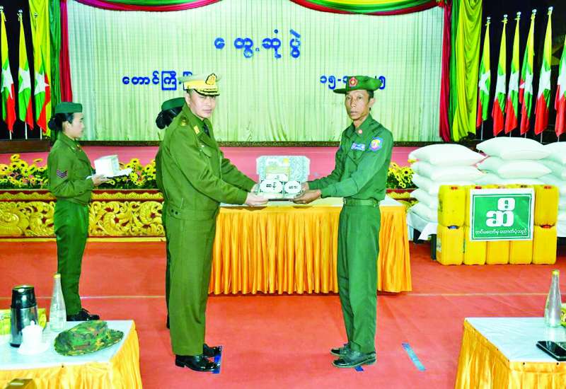 ရှမ်းပြည်နယ်(တောင်ပိုင်း)နှင့် ကယားပြည်နယ်အတွင်းရှိ ပြည်သူ့စစ် (ဌာနေ) တပ်ဖွဲ့ဝင်များအား ယနေ့မွန်းလွဲပိုင်းတွင် အရှေ့ပိုင်းတိုင်းစစ်ဌာနချုပ် တိုင်းမှူးဗိုလ်ချုပ်ဇော်မင်းလတ်နှင့်တာဝန်ရှိသူများက တိုင်းစစ်ဌာနချုပ်သံလွင်ခန်းမ၌ တွေ့ဆုံသည်။