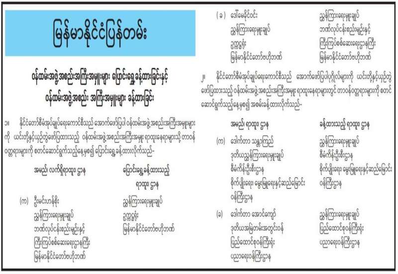 ဝန်ထမ်းအဖွဲ့အစည်းအကြီးအမှူးများ ပြောင်းရွှေ့ခန့်ထားခြင်းနှင့် ဝန်ထမ်းအဖွဲ့အစည်း အကြီးအမှူး များ ခန့်ထားခြင်း