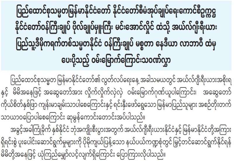 ၁။ ပြည်သူအတွက်ဟု သုံးနှုန်း၍ ရဟန်းသံဃာများ၊ ဆရာ၊ ဆရာမများအပါအဝင် နိုင်ငံ့ဝန်ထမ်းများနှင့် ပြည်သူကိုသတ်ဖြတ်၊ လုယက်ခြင်းကို CRPH၊ NUG၊ PDF အမည်ခံအကြမ်းဖက်အုပ်စုများက ဥပဒေမဲ့ကျူးလွန်နေသည်။