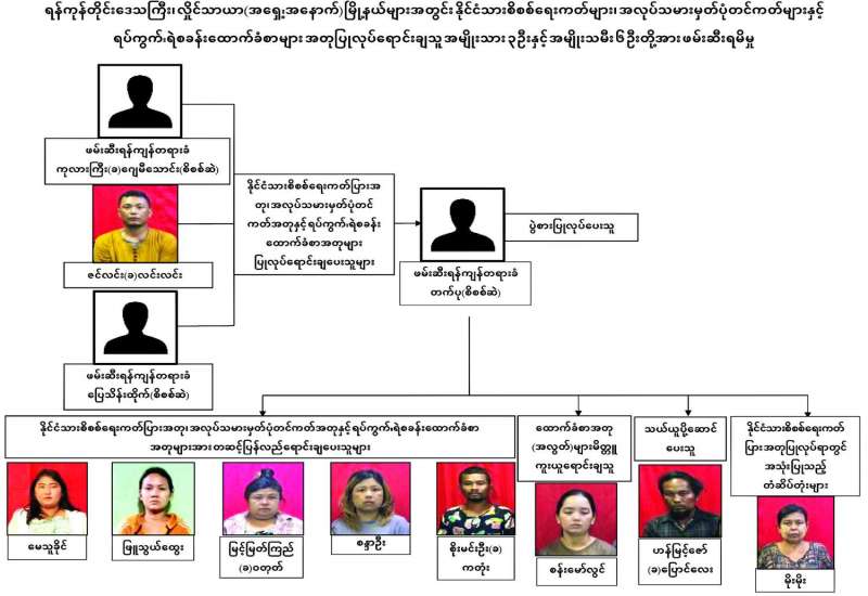 ရှမ်းပြည်နယ်(တောင်ပိုင်း) တောင်ကြီးမြို့နယ်၌ နိုင်ငံသားစိစစ်ရေးကတ်အတုနှင့် ထောက်ခံစာအတုများအား အခကြေးငွေယူ၍ ပြုလုပ်ရောင်းချလျက်ရှိကြောင်း သတင်းအရ လုံခြုံရေးတပ်ဖွဲ့ဝင်များက ပြစ်မှုကျူးလွန်သူများအား ဖော်ထုတ်ဖမ်းဆီးခဲ့ရာ နိုင်ငံသားစိစစ်ရေးကတ်အတုများ ရောင်းချသူတောင်ကြီးမြို့နယ် အေးသာယာမြို့သစ်အမှတ်(၄)ရပ်ကွက်နေ မမေသူခိုင်(၃၄)နှစ် (ဘ)ဦးကျော်ညွန့်အား ဇန်နဝါရီ ၈ ရက်နံနက် ၁၁ နာရီတွင် အမှတ်(၄)ရပ်ကွက် ဗိုလ်တေဇလမ်းပေါ်၌ နိုင်ငံသားစိစစ်ရေးကတ်အတုသုံးခုနှင့်အတူ ဖမ်းဆီးရမိခဲ့သဖြင့် အေးသာယာနယ်မြေရဲစခန်း (ပ) ၅/၂၀၂၅၊ ရာဇသတ်ကြီးပုဒ်မ ၄၂၀/၄၆၈ ဖြင့် အမှုရေးဖွင့်ပြီး ကွင်းဆက်တရားခံများ ဖမ်းဆီးရမိနိုင်ရေး ဆက်လက်ဆောင်ရွက်ခဲ့သည်။