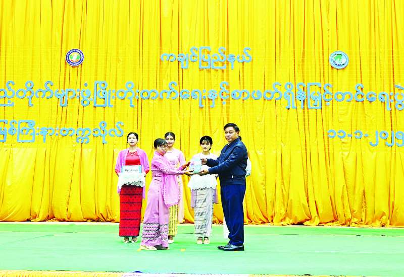 (၇၇)နှစ်မြောက် ကချင်ပြည်နယ်နေ့အထိမ်းအမှတ်အဖြစ် ပြန်ကြားရေးဝန်ကြီးဌာနနှင့် ပညာရေးဝန်ကြီးဌာန၊ ကချင်ပြည်နယ်အစိုးရအဖွဲ့တို့ ပူးပေါင်းကျင်းပသော ကချင်ပြည်နယ် စာကြည့်တိုက်များဖွံ့ဖြိုးတိုးတက်ရေးနှင့် စာဖတ်ရှိန်မြှင့်တင်ရေးအခမ်းအနားကို ယနေ့နံနက် ၈ နာရီတွင် မြစ်ကြီးနားတက္ကသိုလ် ဘွဲ့နှင်းသဘင်ခန်းမဆောင်၌ ကျင်းပသည်။