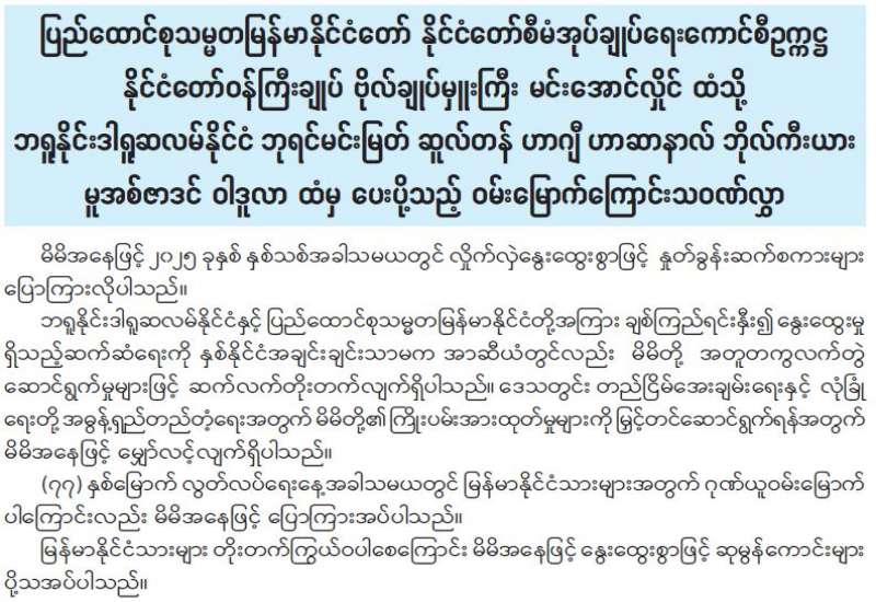 ၂၀၂၄ ခုနှစ်အတွက် မြန်မာ့ရုပ်ရှင်ထူးချွန်ဆုချီးမြှင့်ပွဲအခမ်းအနားကို ဖေဖော်ဝါရီ ၉ ရက်တွင် နေပြည်တော် မြန်မာအပြည်ပြည်ဆိုင်ရာကွန်ဗင်းရှင်းဗဟိုဌာန-၁ (MICC-I)၌ ကျင်းပမည်ဖြစ်ရာ အခမ်းအနားအောင်မြင်စွာ ကျင်းပနိုင်ရေး မြန်မာ့ရုပ်ရှင်ထူးချွန်ဆုချီးမြှင့်ပွဲ အခမ်းအနားကျင်းပရေး လုပ်ငန်းကော်မတီ ညှိနှိုင်းအစည်းအဝေးကို ယနေ့နံနက်ပိုင်းတွင် နေပြည်တော်ရှိ ပြန်ကြားရေးဝန်ကြီးဌာန အစည်းအဝေးခန်းမ၌ ကျင်းပသည်။