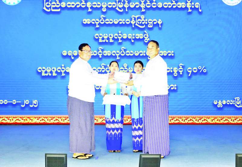 မန္တလေးတိုင်းဒေသကြီးအတွင်း လူမှုဖူလုံရေးအဖွဲ့တွင် အကျုံးဝင်မှတ်ပုံတင်ထားသော အလုပ်ဌာနများမှ ရေဘေးသင့်အာမခံအလုပ်သမားများအား လူမှုဖူလုံရေးကူညီမှု အကျိုးခံစားခွင့် ၄၀ ရာခိုင်နှုန်း ခွင့်ပြုထုတ်ပေးရန် မန္တလေးတိုင်းဒေသကြီး ဝန်ကြီးချုပ်ထံလွှဲပြောင်းပေးအပ်ခြင်း အခမ်းအနားကို ယနေ့နံနက်ပိုင်းတွင် မန္တလေးမြို့ စည်ပင်သာယာရေးကော်မတီ မြို့တော်ခန်းမ၌ ကျင်းပသည်။