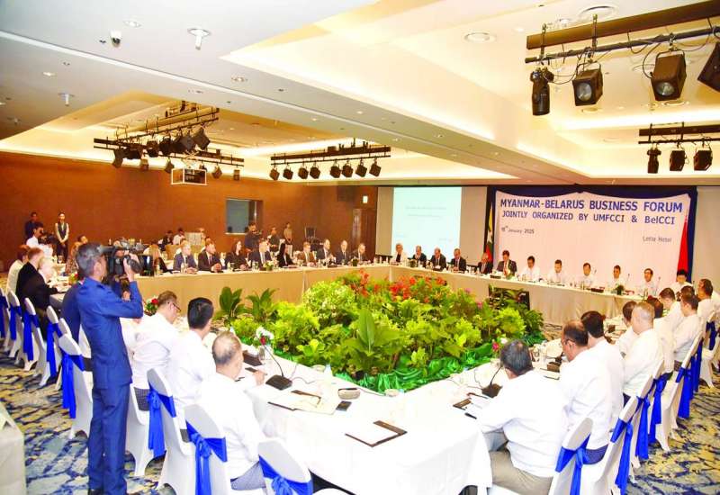 နိုင်ငံတော်စီမံအုပ်ချုပ်ရေးကောင်စီဝင် ဗိုလ်ချုပ်ကြီးညိုစောသည် ယနေ့နံနက်ပိုင်းတွင် ရန်ကုန်မြို့ Lotte Hotel ၌ ကျင်းပသည့် Myanmar – Belarus Business Forum သို့ တက်ရောက်အားပေးသည်။