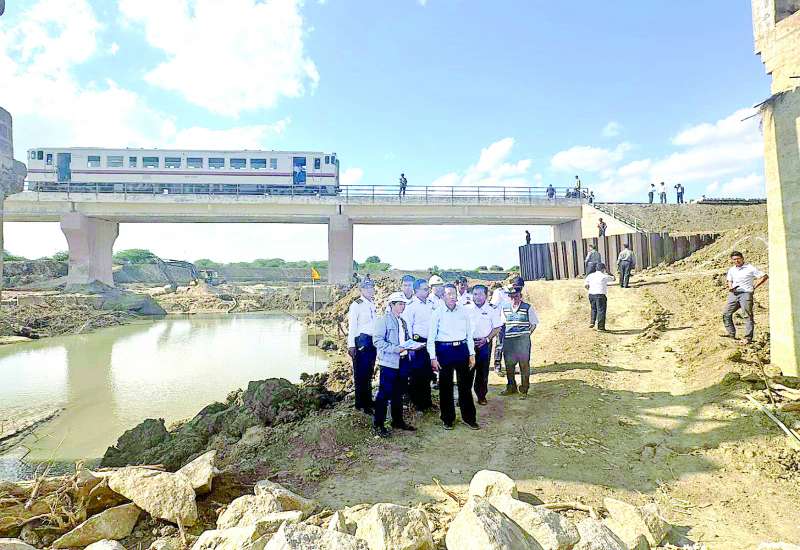 ပို့ဆောင်ရေးနှင့်ဆက်သွယ်ရေးဝန်ကြီးဌာန ဒုတိယဝန်ကြီး ဦးအောင်မြိုင်သည် မြန်မာ့မီးရထားမှ တာဝန်ရှိသူများနှင့်အတူ နေပြည်တော် - သာစည် - သဲတော ရထားလမ်းပိုင်း၌ မိုင်နှုန်းမြှင့်တင်ပြေးဆွဲနိုင်ရေး ပြုပြင်ဆောင်ရွက်နေမှုအခြေအနေကို RBE ရထားဖြင့် လိုက်ပါစီးနင်းစစ်ဆေးသည်။
