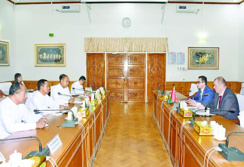 စက်မှုဝန်ကြီးဌာန ဒုတိယဝန်ကြီး ဦးရင်မောင်ညွန့်သည် ယနေ့မွန်းလွဲပိုင်းတွင် ဘယ်လာရုစ် သမ္မတနိုင်ငံစက်မှုဝန်ကြီးဌာန ဒုတိယဝန်ကြီး Mr. Denis BAKEI ဦးဆောင်သည့် ကိုယ်စားလှယ်အဖွဲ့အား နေပြည်တော်ရှိ စက်မှုဝန်ကြီးဌာန ရုံးအမှတ် (၃၀) ၌ လက်ခံတွေ့ဆုံသည်။