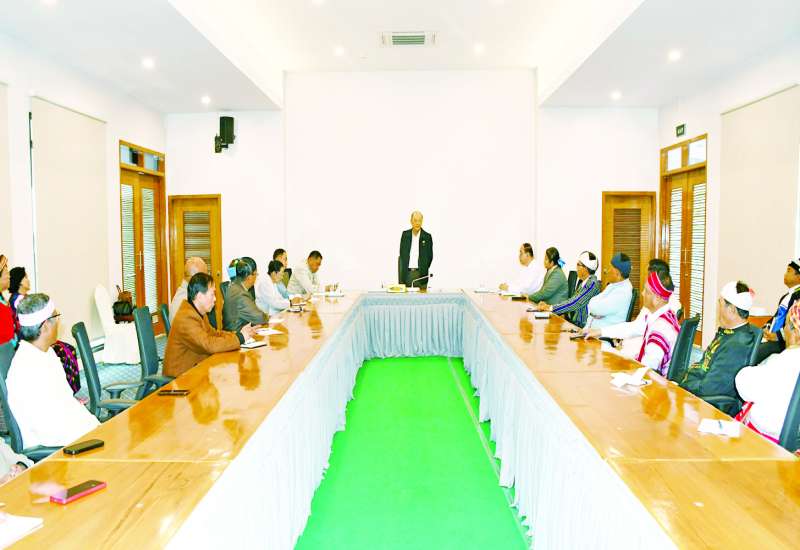 ကချင်ပြည်နယ် မြစ်ကြီးနားမြို့တွင်ရောက်ရှိနေသော တိုင်းရင်းသားလူမျိုးများရေးရာဝန်ကြီးဌာန ပြည်ထောင်စုဝန်ကြီး Jeng Phang နော်တောင်သည် ပြည်နယ်တိုင်းရင်းသားရေးရာဝန်ကြီး ဦးကျော်မင်းခိုင်၊ တာဝန်ရှိသူများနှင့်အတူ ဇန်နဝါရီ ၈ ရက် မွန်းလွဲပိုင်းက မြစ်ကြီးနားမြို့ရှိ ဧရာဝတီဧည့်ရိပ်သာ၌ ကချင်ပြည်နယ်အတွင်းရှိ တိုင်းရင်းသားစာပေနှင့် ယဉ်ကျေးမှု အသင်းအဖွဲ့များနှင့် တွေ့ဆုံဆွေးနွေးသည်။