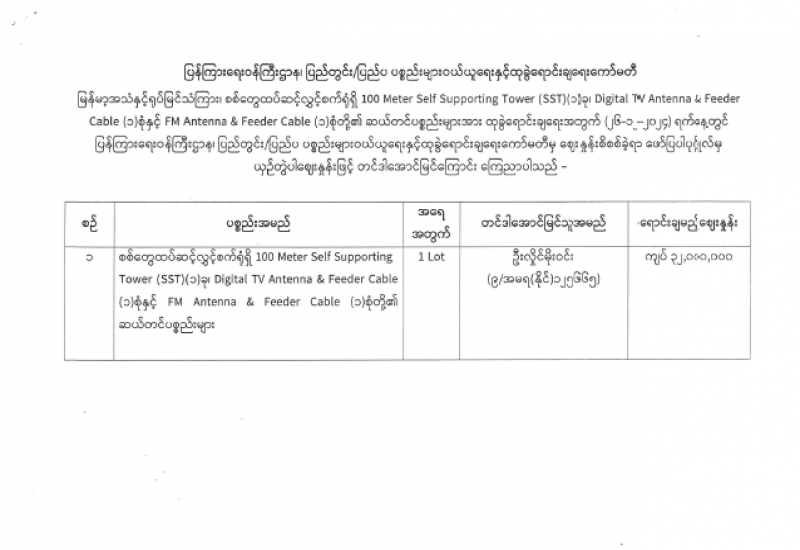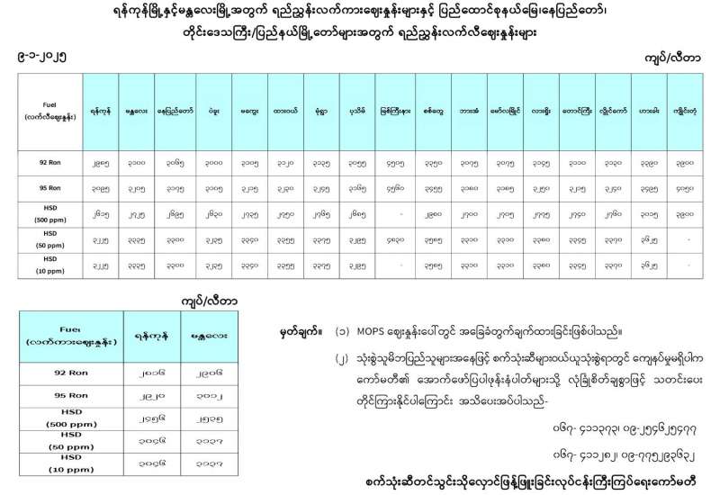 ရန်ကုန်မြို့နှင့် မန္တလေးမြို့အတွက် ရည်ညွှန်းလက်ကားဈေးနှုန်းများနှင့် ပြည်ထောင်စုနယ်မြေ နေပြည်တော်၊ တိုင်းဒေသကြီး/ပြည်နယ် မြို့တော်များအတွက် ရည်ညွှန်းလက်လီဈေးနှုန်းများ