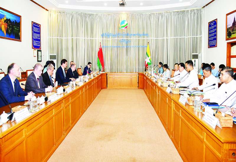 ဒုတိယဝန်ကြီးချုပ်နှင့် နိုင်ငံခြားရေးဝန်ကြီးဌာန ပြည်ထောင်စုဝန်ကြီး ဦးသန်းဆွေနှင့် ဘယ်လာရုစ်သမ္မတနိုင်ငံ နိုင်ငံခြားရေးဝန်ကြီးဌာန ဝန်ကြီး H.E. Mr. Maxim RYZHENKOV တို့ တွေ့ဆုံဆွေးနွေးပွဲကို ယနေ့နံနက် ၉ နာရီတွင် နေပြည်တော်ရှိ နိုင်ငံခြားရေးဝန်ကြီးဌာန၌ ကျင်းပပြုလုပ်သည်။