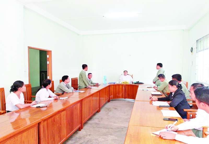 ပြည်ထောင်စုရွေးကောက်ပွဲကော်မရှင်အဖွဲ့ဝင် ဦးအောင်မိုးမြင့်သည် ယနေ့နံနက်ပိုင်းက ရန်ကုန်တိုင်းဒေသကြီးအတွင်း ရခိုင်ပြည်နယ်မှ တွဲဖက်တာဝန်ချထားသည့် ဝန်ထမ်းများအား မြောက်ပိုင်းခရိုင် ရွေးကောက်ပွဲကော်မရှင်အဖွဲ့ခွဲရုံး အစည်းအဝေးခန်းမ၌ တွေ့ဆုံသည်။