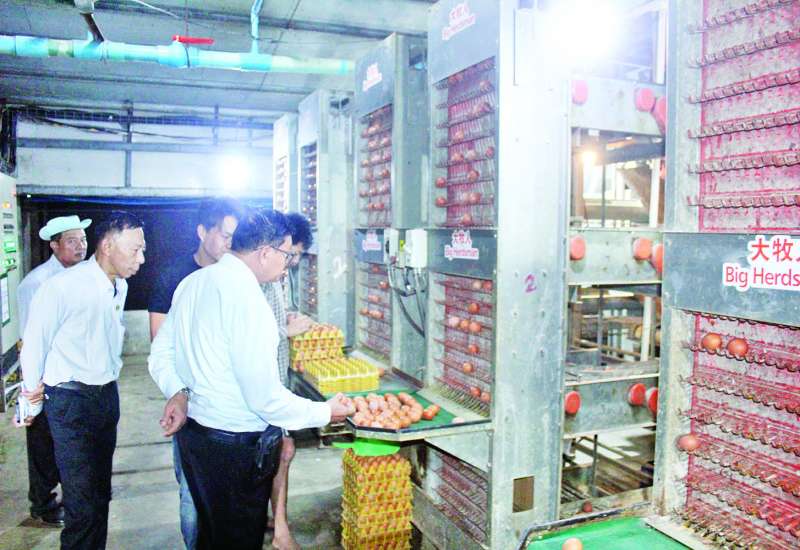 စိုက်ပျိုးရေး၊ မွေးမြူရေးနှင့် ဆည်မြောင်းဝန်ကြီးဌာန ဒုတိယဝန်ကြီး ဒေါက်တာအောင်ကြီးသည် ယမန်နေ့က ရန်ကုန်တိုင်းဒေသကြီး လှည်းကူးမြို့နယ် ညောင်နှစ်ပင် မွေးမြူရေးဇုန် (၃) ရှိ SUNJIN Myanmar Co.,Ltd. ၏ အအေးခန်းမွေးမြူရေးစနစ် (Cooling System) မျိုး ဝက်မွေးမြူရေးခြံသို့ သွားရောက်ကြည့်ရှုရာ ခြံတာဝန်ခံက မွေးမြူရေးခြံအတွင်း မျိုးဝက်မ အကောင် ၁၂၀၀၊ မျိုးဝက်သိုး အကောင် ၂၀ မွေးမြူထားရှိမှုနှင့် တစ်နှစ်လျှင် သားပေါက်ကောင်ရေ ၃၀၀၀၀ ကျော် ရောင်းတမ်းဝင်အဖြစ် ဖြန့်ဖြူးပေးနေမှုတို့ကို ရှင်းလင်းတင်ပြသည်။