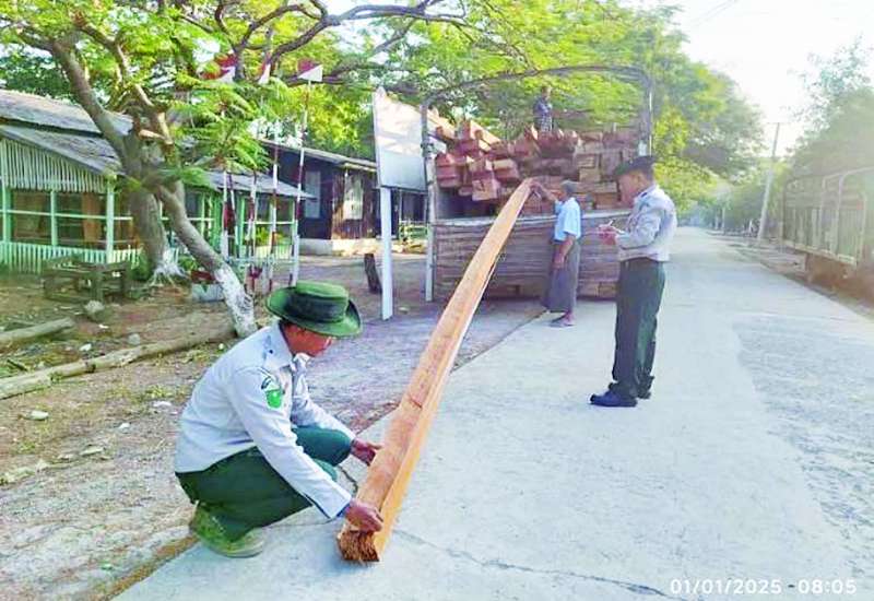 သယံဇာတနှင့်သဘာဝပတ်ဝန်းကျင်ထိန်းသိမ်းရေးဝန်ကြီးဌာန သစ်တောဦးစီးဌာနသည် တရားမဝင် သစ်နှင့် သစ်တောထွက်ပစ္စည်းများ ရှာဖွေဖော်ထုတ်ဖမ်းဆီးရေးအား ပြည်သူပူးပေါင်းပါဝင်မှုဖြင့် လူထုအခြေပြုစောင့်ကြပ်ကြည့်ရှုသတင်းပို့စနစ် (Community Monitoring and Reporting System - CMRS) အပါအဝင် နည်းလမ်းမျိုးစုံဖြင့် အကောင်အထည်ဖော်ဆောင်ရွက်လျက်ရှိရာ ဒီဇင်ဘာ ၃၀ ရက်မှ ဇန်နဝါရီ ၅ ရက်အထိ နေပြည်တော်၊ ပြည်နယ်နှင့် တိုင်းဒေသကြီး သစ်တောဦးစီးဌာနများမှ ပေးပို့လာသော စာရင်းများအရ တရားမဝင် ကျွန်း ၁၄ ဒသမ ၇၅၆၄ တန်၊ သစ်မာ ၃ ဒသမ ၀၆၇၆ တန်၊ အခြား ၂၀ ဒသမ ၇၄၃၆ တန် စုစုပေါင်း ၃၈ ဒသမ ၅၆၇၆ တန်၊ ယာဉ်/ ယန္တရား ရှစ်စီး၊ တရားခံ ၂၀ ဖမ်းဆီးရမိကြောင်း မြန်မာနိုင်ငံ သစ်တောဦးစီးဌာနမှ သိရသည်။