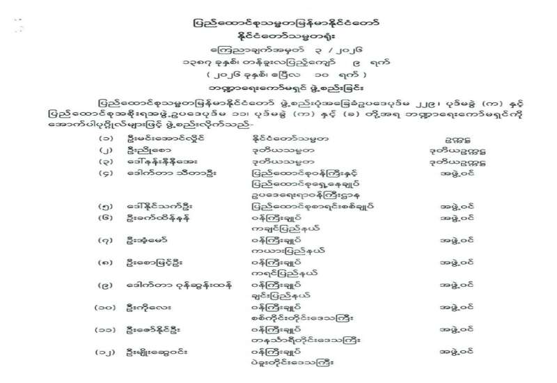 နေပြည်တော်ကောင်စီဥက္ကဋ္ဌ ခန့်အပ်တာဝန်ပေးခြင်း
