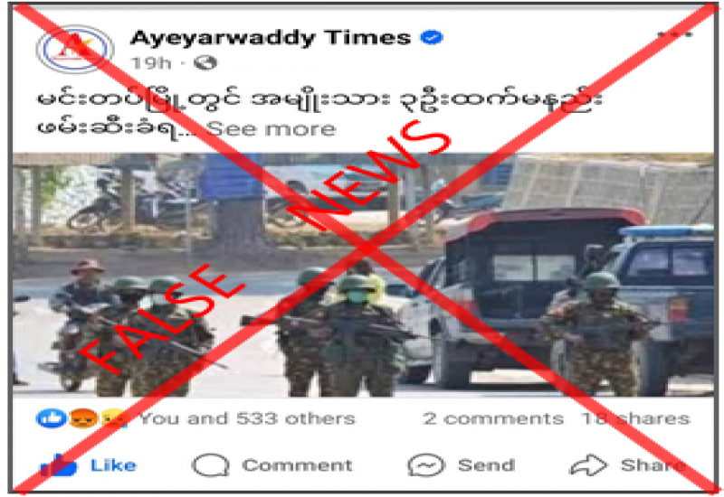 ချင်းပြည်နယ်၊ မင်းတပ်မြို့တွင် စက်တင်ဘာလ ၇ ရက်နေ့ တစ်ရက်တည်းတွင် အရပ်သား ၃ ဦးထက်မနည်း လုံခြုံရေးတပ်ဖွဲ့ဝင်များက ဖမ်းဆီးခေါ်ဆောင်သွားကြောင်း တရားမဝင်ပြည်ဖျက်မီဒီယာများက မဟုတ်မမှန်သတင်းအမှားများ ရေးသားဖြန့်ဝေလျှက်ရှိကြောင်း သိရသည်။