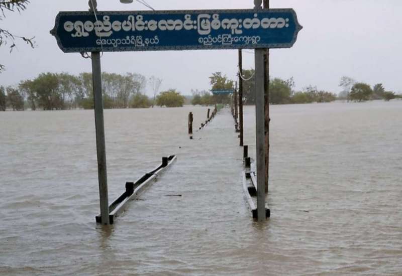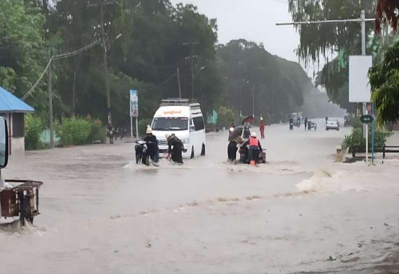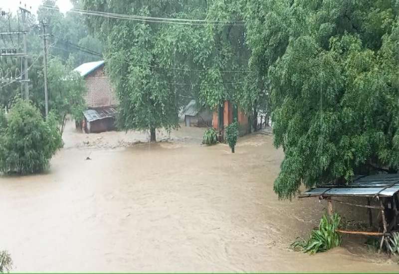 ရမည်းသင်းမြို့တွင် မိုးအဆက်မပြတ် ရွာသွန်းမှုကြောင့် ရပ်ကွက်၊ ကျေးရွာများအတွင်း ရေများဝင်ရောက်လျက်ရှိ