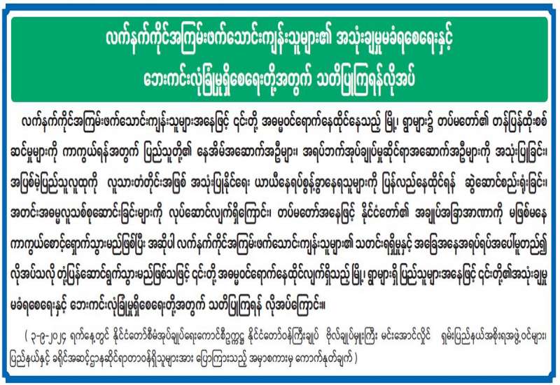 လက်နက်ကိုင်အကြမ်းဖက်သောင်းကျန်းသူများ၏ အသုံးချမှုမခံရစေရေးနှင့် ဘေးကင်းလုံခြုံမှုရှိစေရေးတို့အတွက် သတိပြုကြရန်လိုအပ်