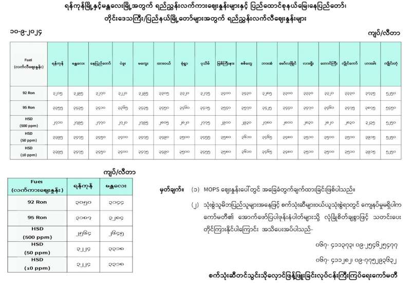 ရန်ကုန်မြို့နှင့် မန္တလေးမြို့အတွက် ရည်ညွှန်းလက်ကားဈေးနှုန်းများနှင့် ပြည်ထောင်စုနယ်မြေ နေပြည်တော်၊ တိုင်းဒေသကြီး/ပြည်နယ် မြို့တော်များအတွက် ရည်ညွှန်းလက်လီဈေးနှုန်းများ