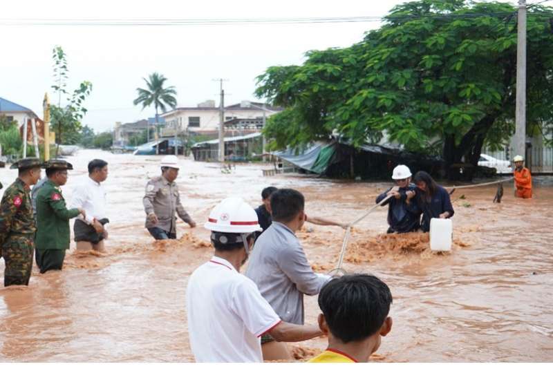 ရှမ်းပြည်နယ် (အရှေ့ပိုင်း)၊ ကျိုင်းတုံမြို့နယ်၌ ယမန်နေ့က မိုးအဆက်မပြတ်ရွာသွန်း၍ ရေကြီးရေလျှံမှုများ ဖြစ်ပွားခဲ့သည့်အတွက် တာဝန်ရှိသူများက ကူညီကယ်ဆယ်ရေးလုပ်ငန်းများ ဆောင်ရွက်လျက်ရှိသည်။