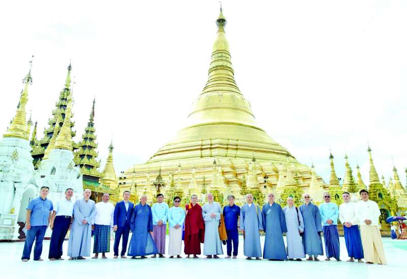 မြန်မာ-တရုတ် “ဆွေမျိုးပေါက်ဖော်” ချစ်ကြည်ရေး ရေရှည်တည်တံ့ခိုင်မြဲစေရန်နှင့် ဗုဒ္ဓဘာသာဝင်များအကြား ချစ်ကြည်ရင်းနှီးမှုဖလှယ်ရန် ရည်ရွယ်ချက်များဖြင့် မြန်မာတရုတ်ချစ်ကြည်ရေးအသင်း (ဗဟို)၏ ဖိတ်ကြားစီစဉ်မှုအရ တရုတ်ပြည်သူ့သမ္မတနိုင်ငံပေကျင်းမြို့ ဗုဒ္ဓဘာသာအသင်းမှ ဥက္ကဋ္ဌဆရာတော် Hu Xuefeng ဦးဆောင်၍ ဗုဒ္ဓဘာသာဗျူရိုမှ အဖွဲ့ဝင်များပါဝင်သော ဧည့်သည်တော်အဖွဲ့သည် ယနေ့နံနက် ၈ နာရီခွဲတွင် ရွှေတိဂုံစေတီတော်မြတ်ကြီးသို့ လာရောက်ဖူးမြော်ရာ မြန်မာ-တရုတ်ချစ်ကြည် ရေးအသင်း (ဗဟို) ဥက္ကဋ္ဌ ဦးတင်ဦးနှင့်အဖွဲ့ဝင်များ၊ ရွှေတိဂုံစေတီတော် ဘဏ္ဍာတော်ထိန်းဂေါပကအဖွဲ့ အလှည့်ကျသဘာပတိ ဦးညွန့်သင်းနှင့် ဘဏ္ဍာတော် ထိန်းဂေါပကအဖွဲ့ဝင်များ၊ ရန်ကုန်တိုင်းဒေသကြီး သာသနာရေးမှူး ဦးဇော်ဦးတို့က ကြိုဆိုဂါရဝပြုနှုတ်ဆက်ကြသည်။