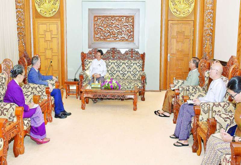 ဒုတိယဝန်ကြီးချုပ်နှင့် နိုင်ငံခြားရေးဝန်ကြီးဌာန ပြည်ထောင်စုဝန်ကြီး ဦးသန်းဆွေသည် မြန်မာနိုင်ငံဆိုင်ရာ ကုလသမဂ္ဂယာယီဌာနေညှိနှိုင်းရေးမှူးနှင့် လူသားချင်းစာနာထောက်ထားမှုဆိုင်ရာ ယာယီညှိနှိုင်းရေးမှူးဖြစ်သူ Mr. Marcoluigi Corsi အား ယနေ့နံနက် ၁၀ နာရီခွဲတွင် နေပြည်တော်ရှိ နိုင်ငံခြားရေးဝန်ကြီးဌာန၌ လက်ခံတွေ့ဆုံသည်။