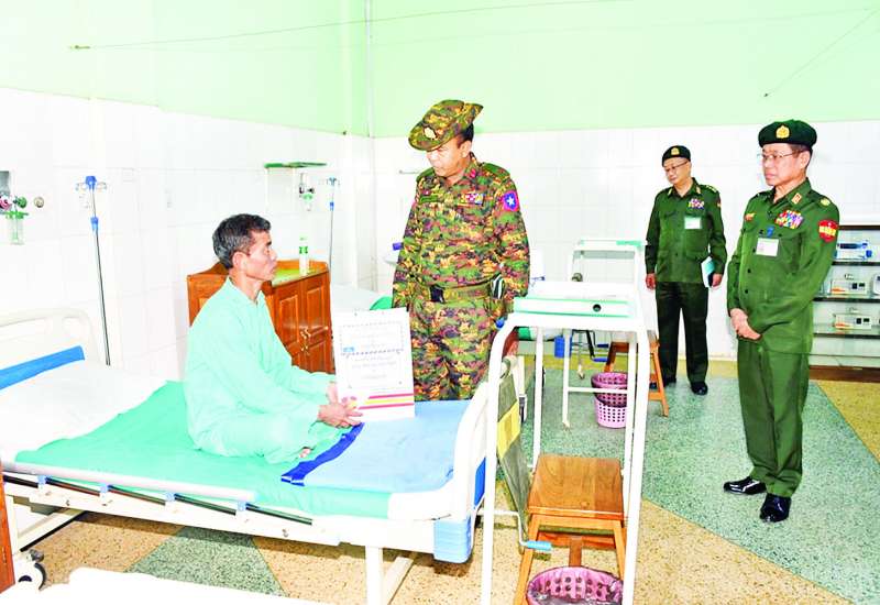 မန္တလေးတိုင်းဒေသကြီး၊ ပြင်ဦးလွင်မြို့ရှိ တပ်မတော်ဆေးရုံ၌ တက်ရောက်ဆေးကုသမှုခံယူလျက်ရှိသော အရာရှိ၊ စစ်သည်၊ မိသားစုများနှင့် ဒေသခံပြည်သူများအား ယနေ့မွန်းလွဲပိုင်းတွင် အလယ်ပိုင်းတိုင်းစစ်ဌာနချုပ် တိုင်းမှူးဗိုလ်မှူးချုပ်ကျော်ကိုထိုက်နှင့် တာဝန်ရှိသူများက သွားရောက်ကြည့်ရှု၍ တစ်ဦးချင်း၏ ရောဂါဖြစ်ပွားမှု၊ ဆေးဝါးကုသပေးထားမှုနှင့် ကျန်းမာရေးတိုးတက်ကောင်းမွန်မှု အခြေအနေများကို ရင်းရင်းနှီးနှီးမေးမြန်း အားပေးစကားပြောကြားပြီး အာဟာရဖြည့် စားသောက်ဖွယ်ရာများ ပေးအပ်သည်။