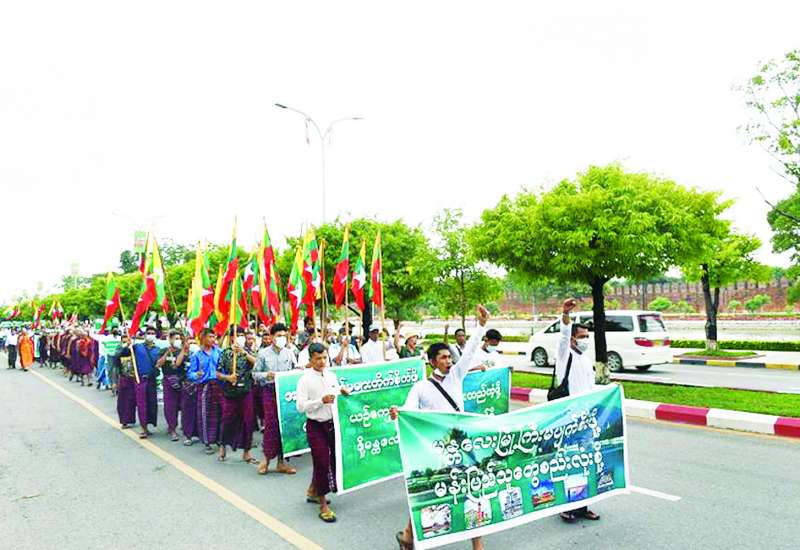 မန္တလေးတိုင်းဒေသကြီး၊ မန္တလေးမြို့ရှိ ယဉ်ကျေးမှုအမွေအနှစ်များနှင့် မြို့တော်ကြီးကိုကာကွယ်ရန်၊ စစ်ဘေးမဖြစ်စေရန်အတွက် ပြည်သူများက ဆန္ဒထုတ်ဖော်ပွဲကို ယနေ့မွန်းလွဲပိုင်းတွင် အောင်မြေသာစံမြို့နယ်၊ ဒေါနဘွားရပ်ကွက်၊ ၁၄ လမ်း၊ ၆၃ လမ်းနှင့် ၆၄ လမ်းကြား၊ မန္တလေးတောင်ခြေရှိ ခြင်္သေ့ကြီးနှစ်ကောင်ရှေ့တွင် သံဃာတော်များနှင့် မျိုးချစ်ဒေသခံပြည်သူများစုပေါင်း၍ ပြုလုပ်ခဲ့ကြသည်။