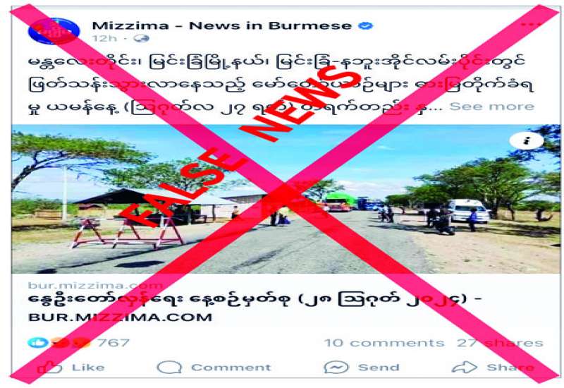 မန္တလေးတိုင်းဒေသကြီး မြင်းခြံမြို့နယ် မြင်းခြံ-နဘူးအိုင်လမ်းပိုင်းတွင် ဖြတ်သန်းသွားလာနေသည့် မော်တော်ယာဉ်များအား ဩဂုတ်လ ၂၇ ရက်တွင် ဓားပြတိုက်လျက်ရှိပြီး ဓားပြတိုက်သူများမှာ ရဲတပ်ဖွဲ့၊ တပ်မတော်နှင့်ပျူစောထီးများဖြစ်ကြောင်း တရားမဝင်ပြည်ဖျက် မီဒီယာများက သတင်းအမှားများ မဟုတ်မမှန်ရေးသား ဖြန့်ဝေလျက်ရှိကြောင်း တွေ့ရှိရသည်။