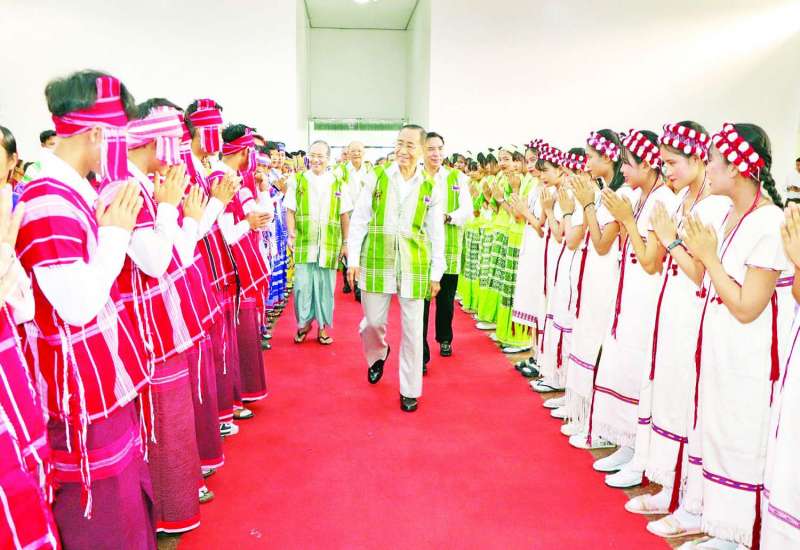 ပဲခူးမြို့ မြို့တော်ခန်းမ၌ ယနေ့နံနက်ပိုင်းတွင် ကရင်ရိုးရာဝါခေါင်လချည်ဖြူဖွဲ့ မင်္ဂလာအခမ်းအနားကျင်းပရာ နိုင်ငံတော်စီမံအုပ်ချုပ်ရေးကောင်စီအဖွဲ့ဝင် မန်းငြိမ်းမောင်၊ တိုင်းရင်းသားလူမျိုးများရေးရာဝန်ကြီးဌာန ပြည်ထောင်စုဝန်ကြီးနှင့် ပဲခူးတိုင်းဒေသကြီးဝန်ကြီးချုပ်တို့ တက်ရောက်ချီးမြှင့်ကြသည်။