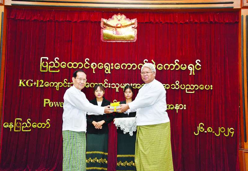 ပထမအကြိမ်မဲပေးမည့် လူငယ်မဲဆန္ဒရှင်များအုပ်စုတွင် အကျုံးဝင်နေသော ကျောင်းသား၊ ကျောင်းသူများအတွက် ဖွဲ့စည်းပုံအခြေခံဥပဒေ (၂၀၀၈ ခုနှစ်)နှင့် ပြည်ထောင်စုရွေးကောက်ပွဲကော်မရှင်ဥပဒေဆိုင်ရာ မဲဆန္ဒရှင်အသိပညာပေး PowerPoint အား ပြည်ထောင်စုရွေးကောက်ပွဲကော်မရှင်က ပညာရေးဝန်ကြီးဌာနသို့ အပ်နှင်းသည့်အခမ်းအနားကို ယနေ့နံနက် ၉ နာရီခွဲတွင် ပြည်ထောင်စုရွေးကောက်ပွဲကော်မရှင်ရုံး အစည်းအဝေးခန်းမ၌ ကျင်းပသည်။