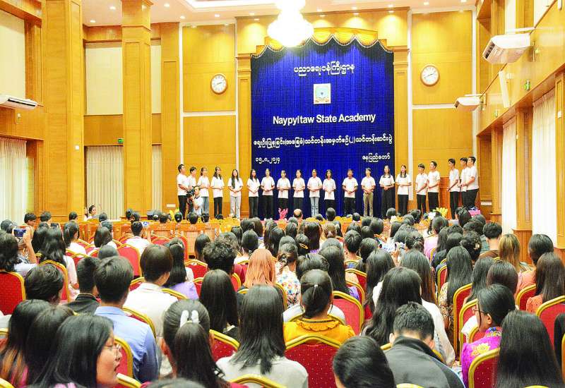 ပညာရေးဝန်ကြီးဌာန Naypyitaw State Academy ၏ အမှတ်စဉ်(၂) ရှေးဦးပြုစုခြင်း(အခြေခံ)သင်တန်း ဆင်းပွဲအခမ်းအနားကို ယနေ့မွန်းလွဲပိုင်းက အဆိုပါတက္ကသိုလ်ရှိ ဘက်စုံခန်းမ၌ ကျင်းပရာ Naypyitaw State Academy ၏ ဒုတိယပါမောက္ခချုပ် ဒေါက်တာစိုးစိုးအောင်၊ ပါမောက္ခ(ဌာနမှူး)များ၊ ပါမောက္ခများ၊ ဆရာ ဆရာမများ၊ သင်တန်းနည်းပြနှင့် သင်တန်းသား သင်တန်းသူများ၊ ကျောင်းသား ကျောင်းသူများ တက်ရောက်ကြသည်။