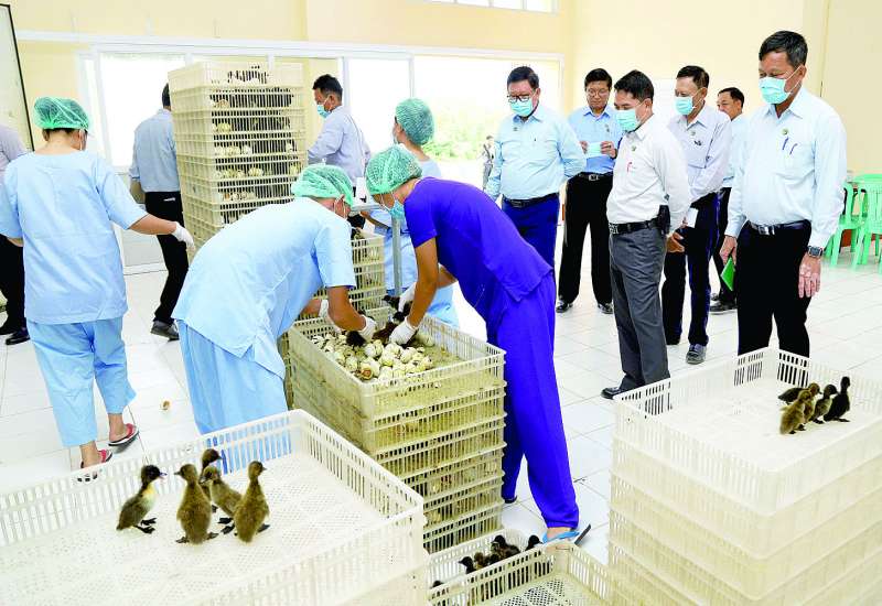 စိုက်ပျိုးရေး၊ မွေးမြူရေးနှင့် ဆည်မြောင်းဝန်ကြီးဌာန ပြည်ထောင်စုဝန်ကြီး ဦးမင်းနောင်သည် ဒုတိယဝန်ကြီး ဒေါက်တာအောင်ကြီးနှင့်အတူ ယနေ့နံနက်ပိုင်းက တပ်ကုန်းမြို့နယ် ရွှေမြို့တိုးချဲ့မွေးမြူရေးဇုန်တွင် မွေးမြူရေးနှင့်ကုသရေးဦးစီးဌာနက ဆောင်ရွက်လျက်ရှိသော ဘဲဥသားဖောက်စက်၊ ဘဲမွေးမြူရေးခြံနှင့် ဒေသနွား မျိုးထိန်းမျိုးပွားခြံတို့ကို ကြည့်ရှုစစ်ဆေးပြီး ဘဲမွေးမြူရေးလုပ်ငန်းများဖွံ့ဖြိုးလာရေးနှင့် ဒေသနွားများ တိုးပွားထိန်းသိမ်းရေးဆိုင်ရာများ ဆွေးနွေးမှာကြားသည်။