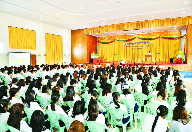 ဟိုတယ်နှင့် ခရီးသွားလာရေး ဝန်ကြီးဌာန ၂၀၂၃-၂၀၂၄ ပညာ သင်နှစ် တက္ကသိုလ်ဝင်စာမေးပွဲတွင် ထူးချွန်စွာအောင်မြင်ခဲ့သည့် ဝန်ထမ်းသားသမီးများအား ပညာရည်ချွန်ဆုချီးမြှင့်ခြင်း အခမ်းအနားကို ယနေ့မွန်းလွဲပိုင်းတွင် နေပြည်တော်ရှိ ဟိုတယ်နှင့်ခရီးသွားလာရေးဝန်ကြီးဌာန ကျောက်စိမ်းခန်းမ၌ ကျင်းပသည်။
