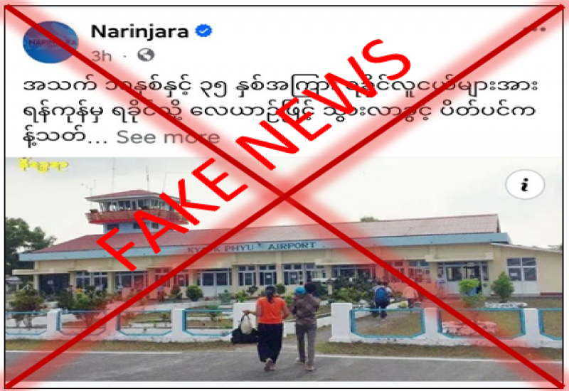 အသက် ၁၈ နှစ်နှင့် ၃၅ နှစ်အကြား ရခိုင်လူငယ်များအား ဖေဖော်ဝါရီ ၂၄ ရက်နေ့မှ စတင်၍ ရန်ကုန်မှ ရခိုင်သို့ လေယာဉ်ဖြင့် သွားလာခွင့်ပိတ်ပင် ကန့်သတ်ထားကြောင်း ကောလာဟလသတင်းအမှားများကို တရားမဝင်ပြည်ဖျက်မီဒီယာများက ပြည်သူများ အထင်အမြင်လွဲမှားစေရန် လူမှုကွန်ရက်စာမျက်နှာများတွင် မဟုတ်မမှန်ရေးသား ဖြန့်ဝေနေသည်ကို တွေ့ရှိရသည်။